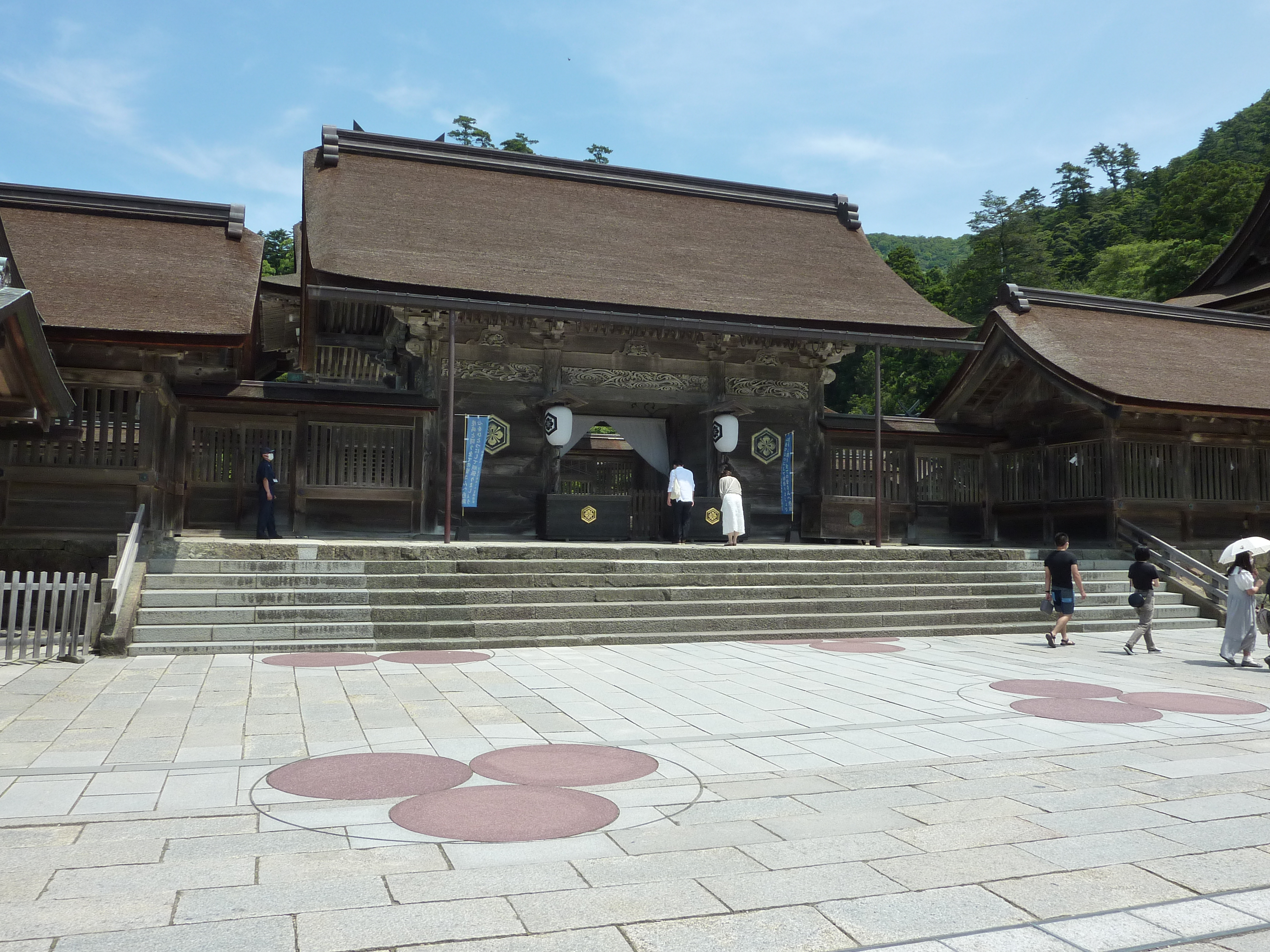 御本殿前の足元に目を向けてみてください。石畳に描かれているのは、かつての出雲大社の御本殿の宇豆柱が出土した場所となります。 平成12年から13年にかけて、出雲大社境内遺跡から、直径が1・4mほどのスギの大木3本を1組にし、直径が約3mにも...