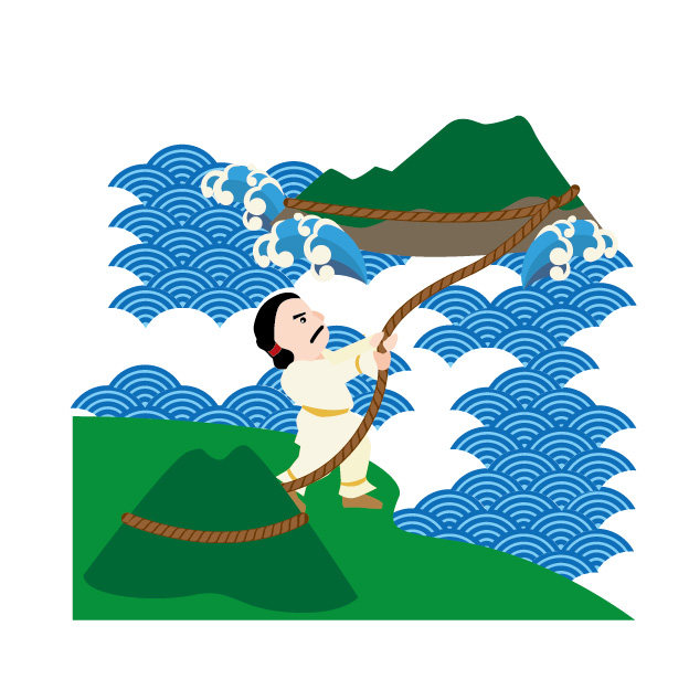 『国引き神話』のあらまし 昔、出雲の国の形を見た八束水臣津野命(やつかみずおみつのみこと)は、国が小さいのでもっと大きくしようと思い、新羅の国(現在の朝鮮半島)や現在の北陸地方の余りの土地を切り取り、網をかけて「国来国来(くにこくにこ...
