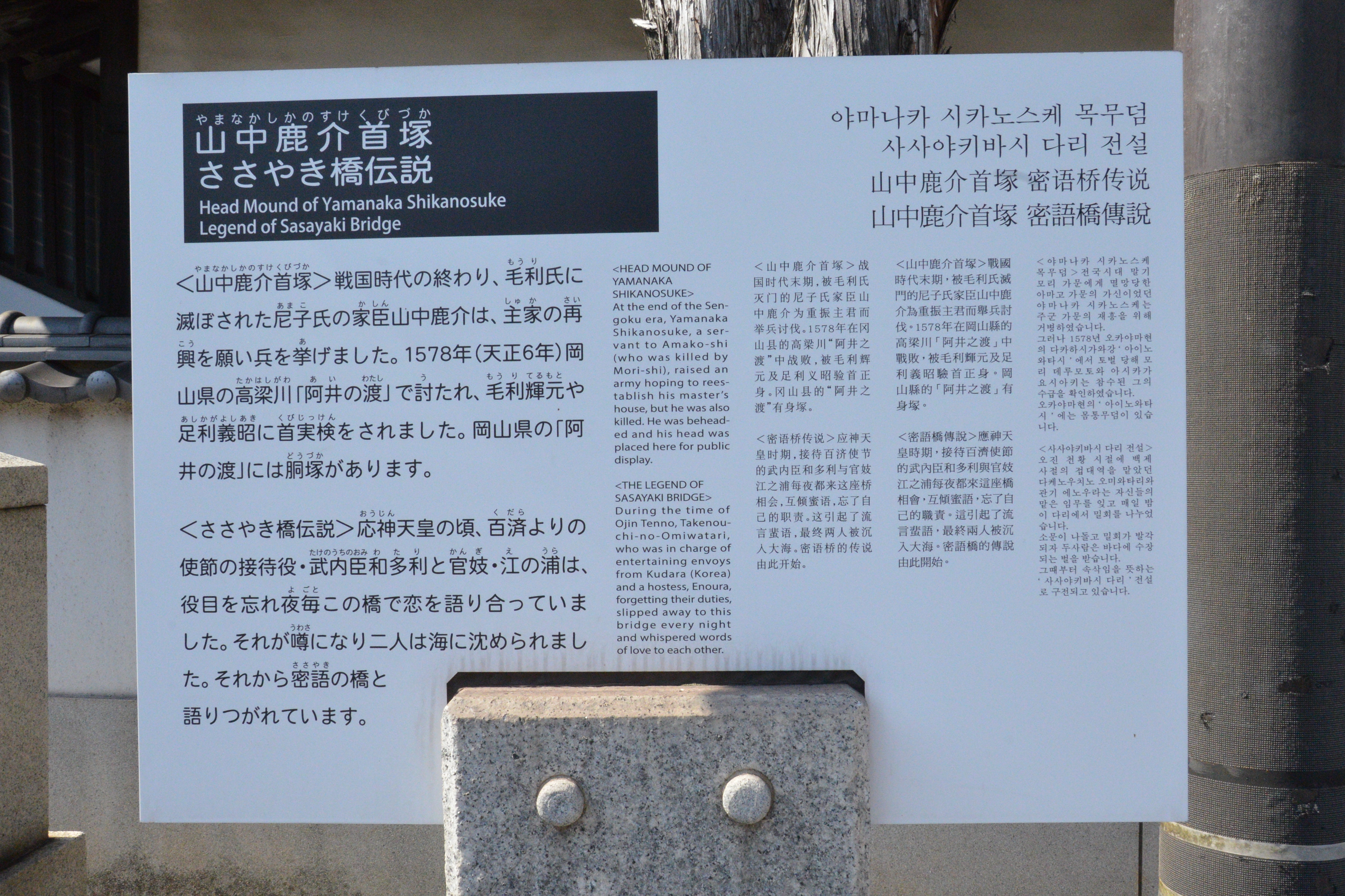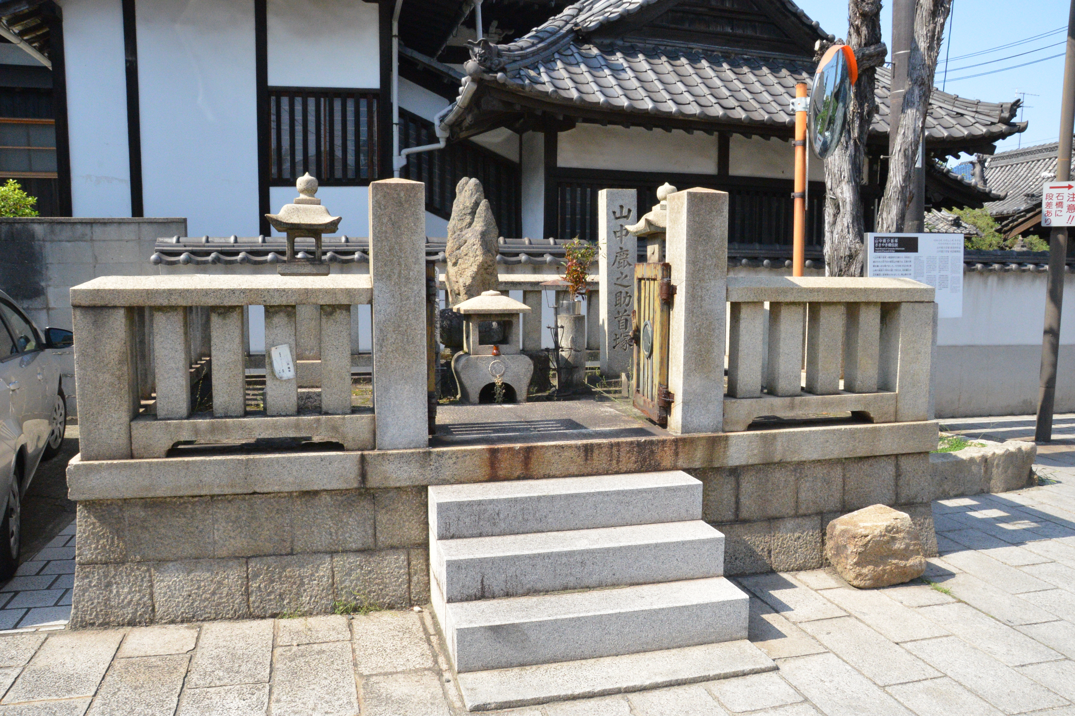て首をはねられました。その後、彼の首は鞆の浦へ送られ、首実検(くびじっけん)といわれる配下の武士が戦場で討ちとった敵方の首級(くび・しるし)の身元を大将が判定し、配下の武士の功績を評価するための一連の儀式を受けた後、この地付近に葬られたとされています。