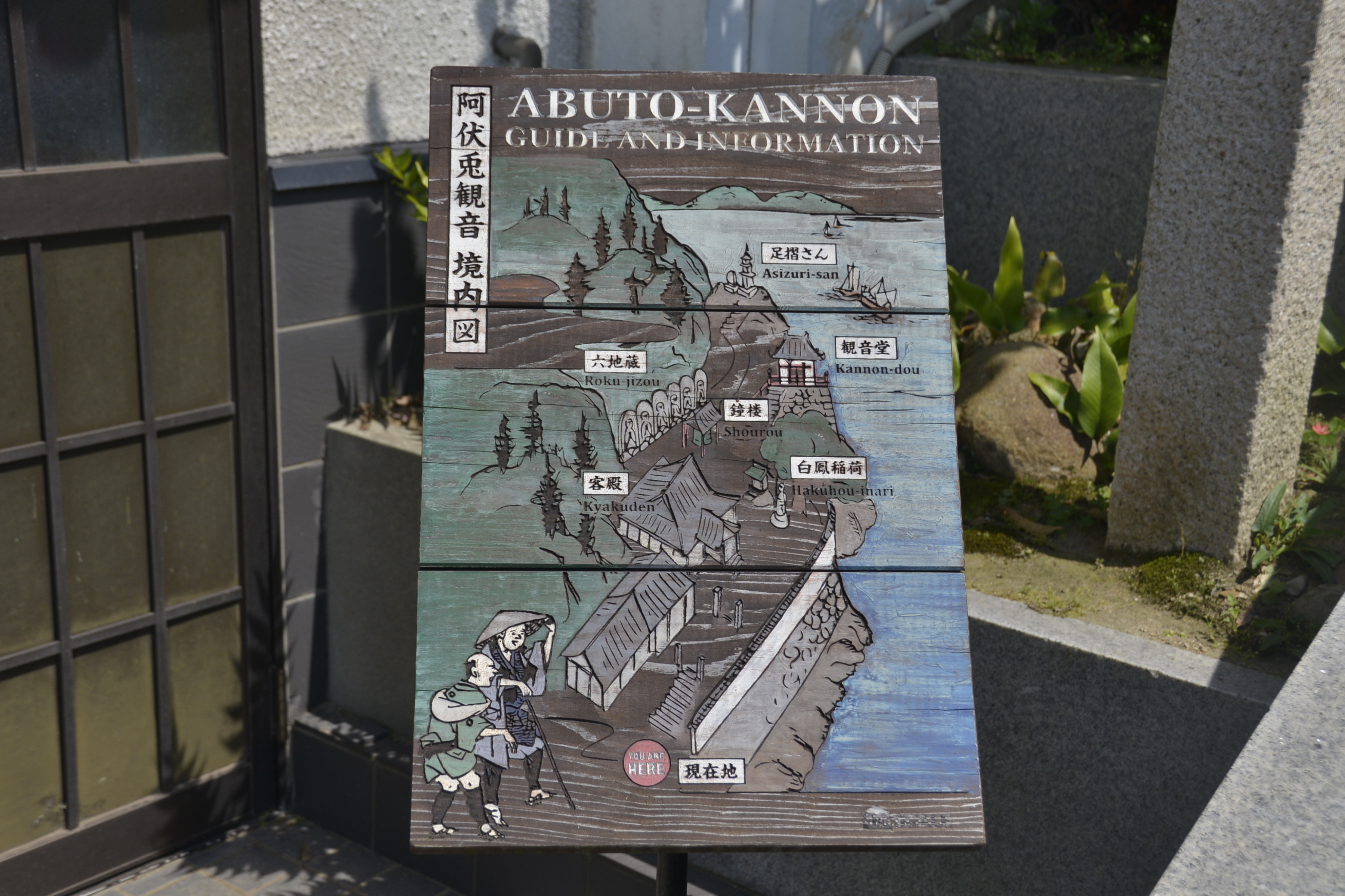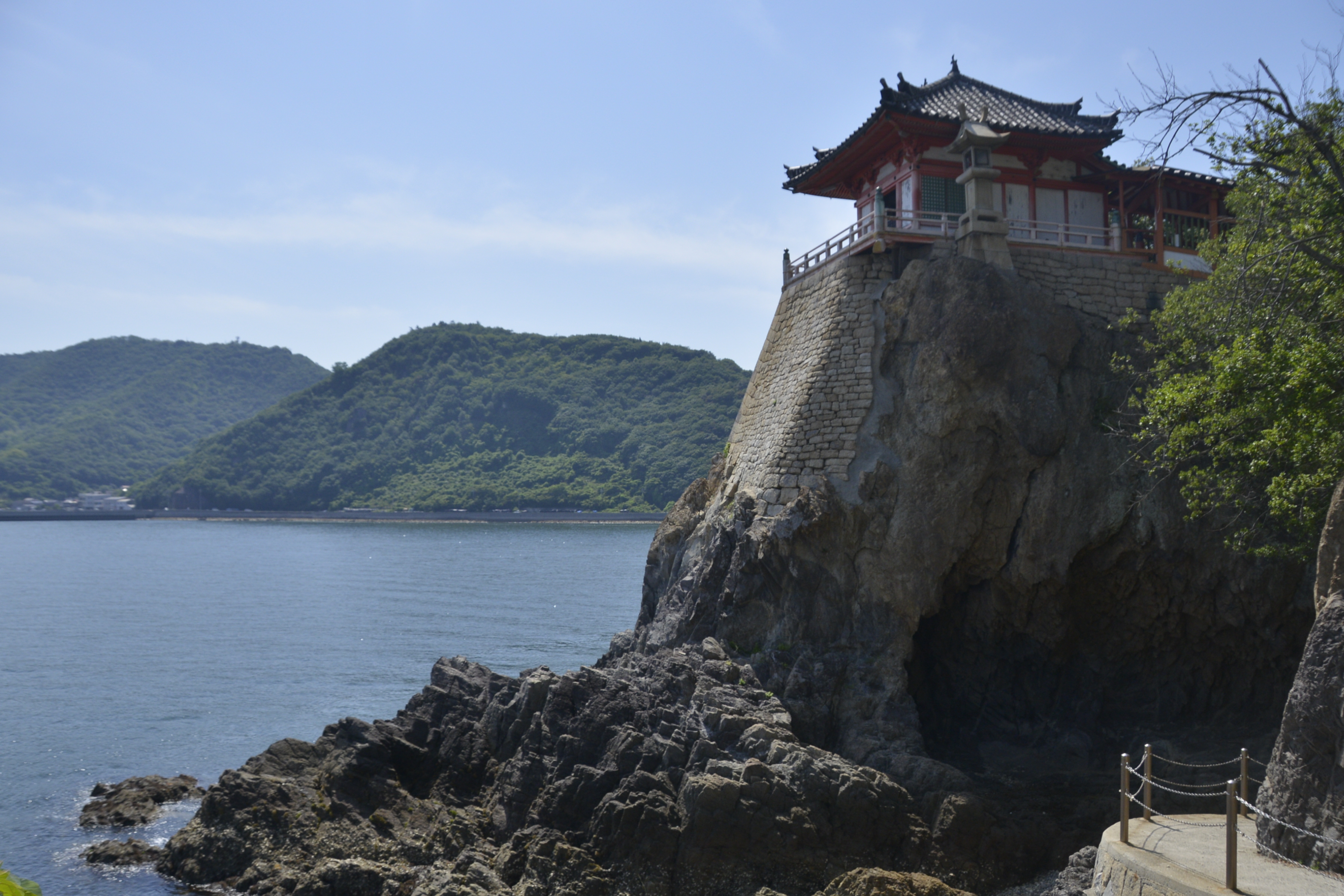 沼隈半島の突端の阿伏兎岬に、正暦(しょうりゃく)3年(992年)花山(かざん)天皇が、航海の無事を祈って建立し、毛利元就により再建されたと伝えられ、ご本尊は十一面観音で臨済宗の寺院。 境内には堂宇が建ち並び、その中の岬の突端の断崖に建つ朱...